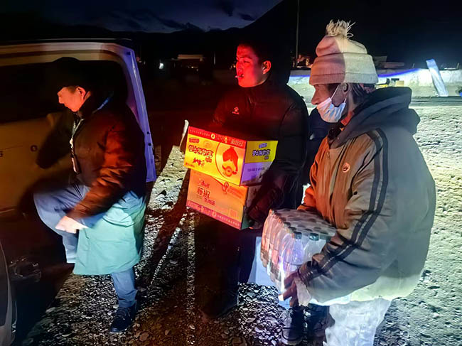 中国人寿寿险公司十分关注抗震救灾和受灾群众的生产生活,在拉萨、日喀则两地积极调配采购被褥、军大衣、饮用水、方便食品等应急物资送往灾区,助力当地政府保障群众基本生活。日喀则分公司负责人及工作人员第一时间携带救援物资,包括饮用水7600瓶、方便桶面3840份、军大衣150件等抵达现场,成立国寿党员突击队、设立快速理赔服务点,配合相关部门开展慰问及客户服务工作。