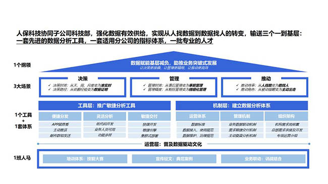 人保科技积极响应国家"发展数字经济、激活数据要素价值"的战略部署,创新构建"工具+体系+人才"三位一体赋能体系,系统性破解基层保险机构长期面临的数据应用难题,让保险数据赋能真正落地生根,为推动保险业数字化转型提供了可复制、可推广的实践范例。