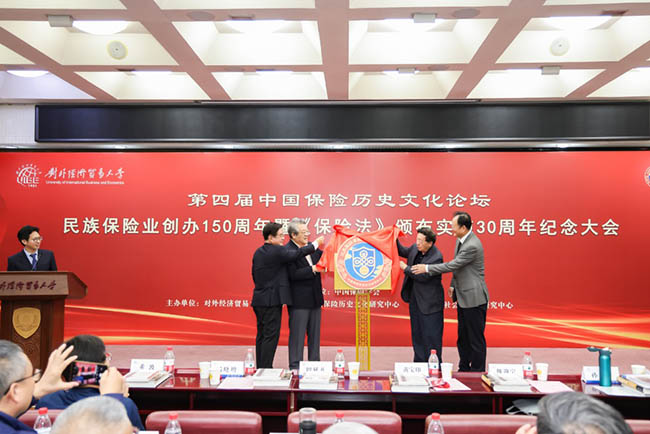 2025年10月12日,第四届中国保险历史文化论坛——“民族保险业创办150周年暨《保险法》颁布实施30周年”纪念大会在对外经济贸易大学顺利举行。本次论坛由中国保险学会指导,对外经济贸易大学保险学院、中国保险历史文化研究中心、保险法与社会保障法研究中心共同主办。第十三届全国政协委员、原中国保监会党委副书记、副主席周延礼,第十一届全国政协委员、原中国保监会副主席、原香港中国保险(集团)有限公司党委书记、董事长冯晓增,原中国保监会副主席魏迎宁,中国保险学会党委书记、会长董波,对外经济贸易大学党委书记黄宝印等领导和嘉宾出席并致辞,来自保险行业内外的一百余名专家学者参加了论坛。