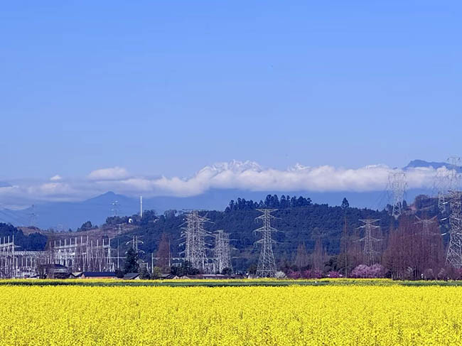 作为油菜生产第一大省,得益于都江堰千年水利的滋养与得天独厚的自然禀赋,四川所产的油菜籽饱满丰盈。每到春日,从成都平原的千里沃野,到川东丘陵的层叠梯田;从嘉陵江畔的河谷,到攀西高原的阳光地带,金色的花海次第绽放,将整个巴蜀大地晕染成一幅连绵千里的春日长卷。而在这幅长卷之上,一抹“国寿绿”正悄然穿行其间。